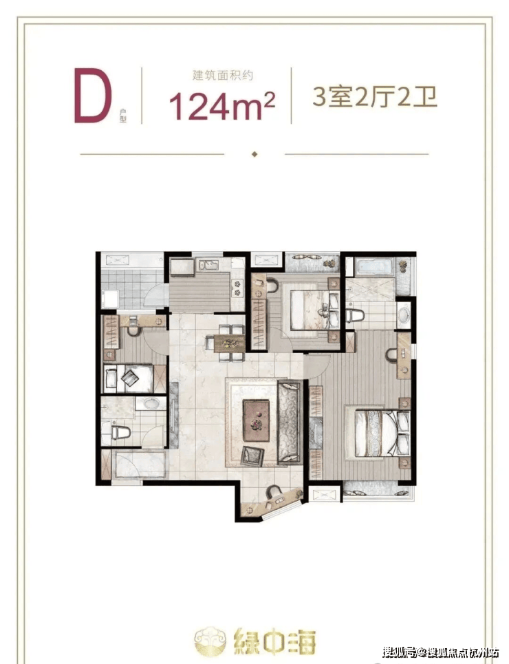 建面约133㎡3房2厅2卫