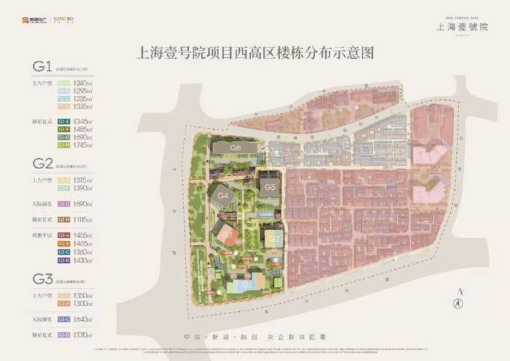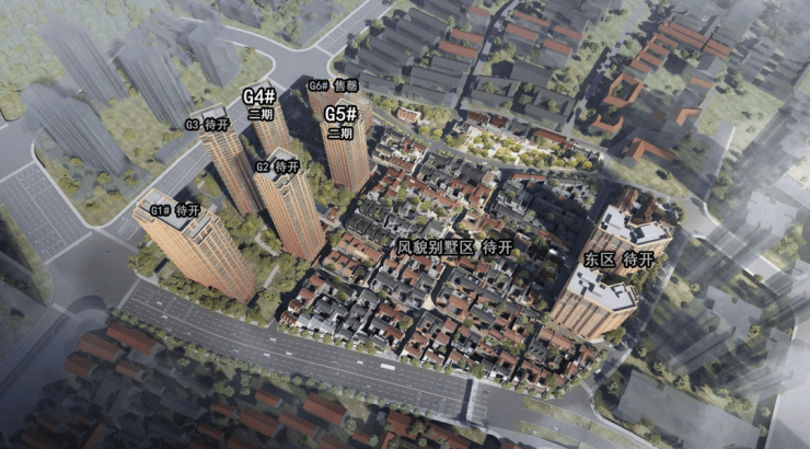 项目主要分两个地块,西区G地块主打新建高层住宅,总计六幢,夹杂了4套保留改建的别墅产品。