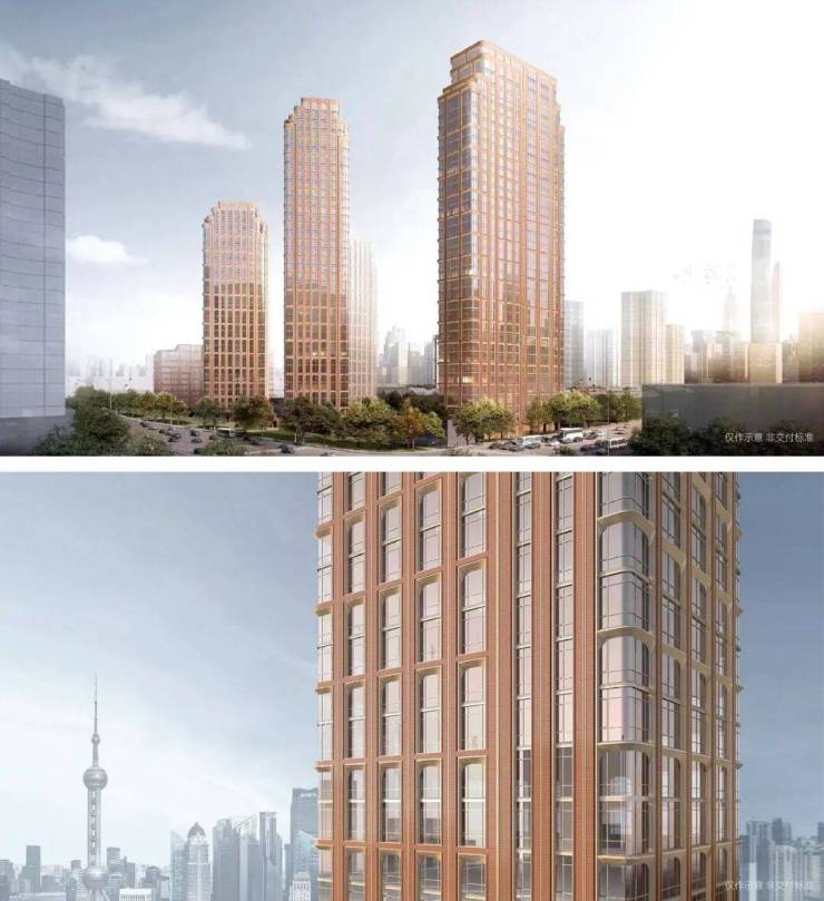 整个建筑的外立面将经典的Art Deco立面风格与海派文化相结合,用Art Deco常用的竖向线条来解决高层建筑的挺拔感、用红色陶板来勾勒出海派老洋房的红砖意象,呼应历史、但又符合现代人高级审美。