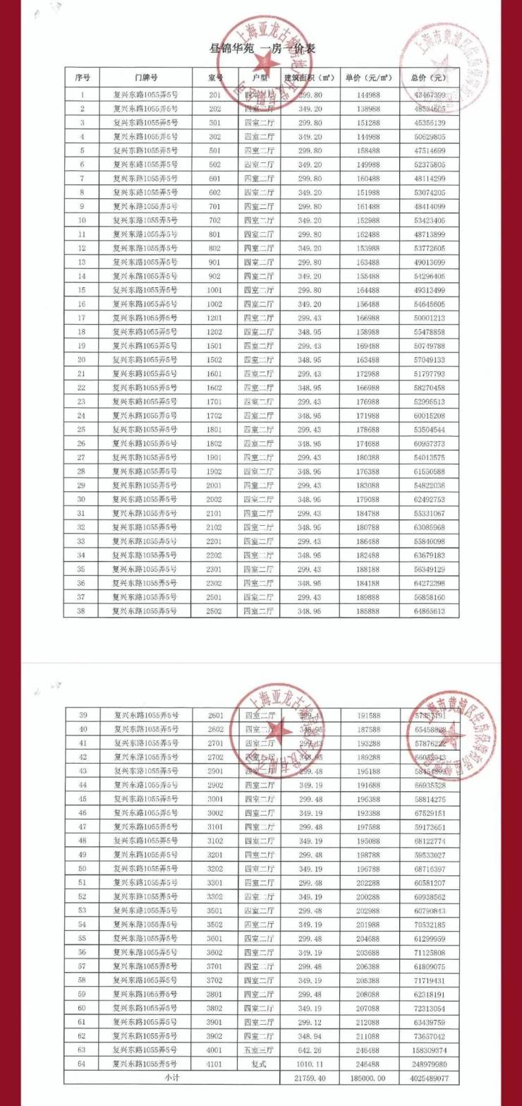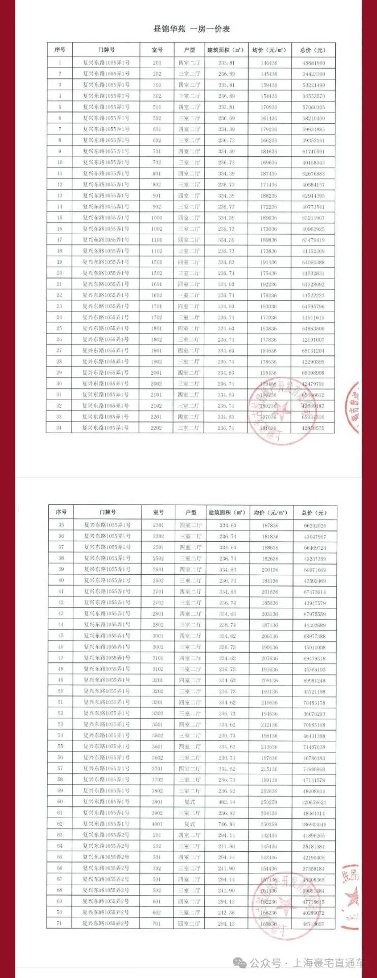 四批次一房一价表