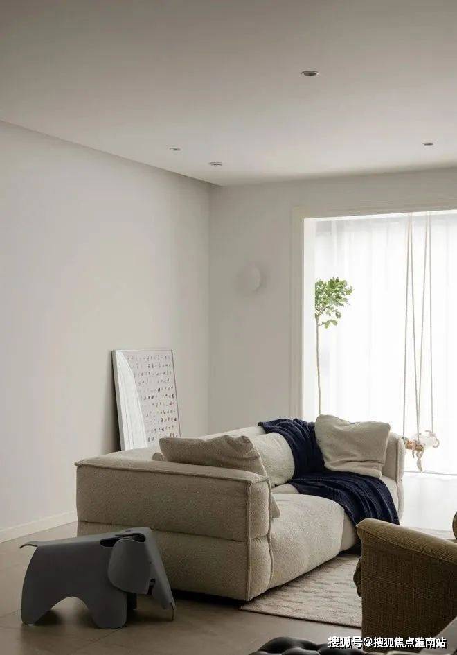 客厅无主灯,灯光层次更丰富,再搭配一盏纯白LP Hat壁灯,精致小巧,打破呆板的墙体表情。