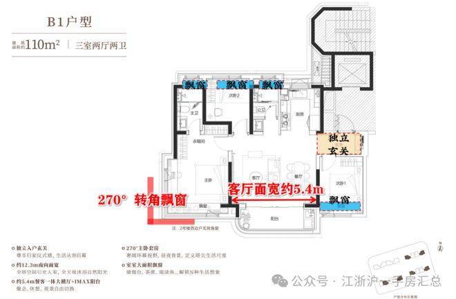 同样延续了 “餐客厅厨一脉相连+全卧室飘窗设计”。
