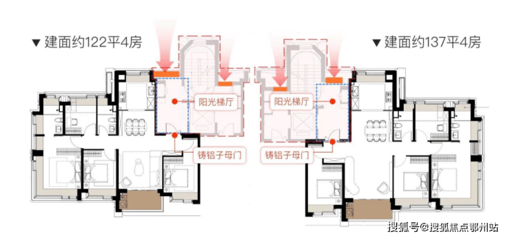 建面约122㎡/137㎡户型,实现 类一梯一户的越级体验,这是仅在2000万大平层才会出现的“稀有款”。不仅尊崇感拉满,更能实现全明梯厅+户内玄关 “双玄关”的“隐形扩容”,雨伞、换鞋等动作都能在梯厅一次性完成。