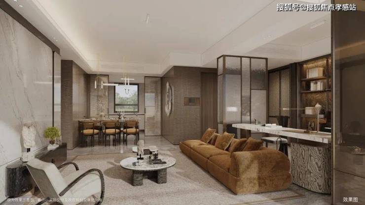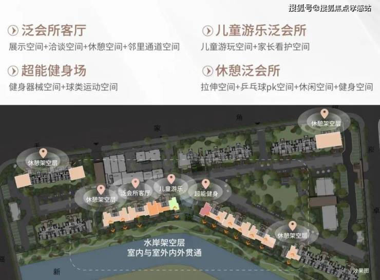 品质归家轴:贯通主入口+对景空间+架空层+社交花园港湾,形成一体化泛会所客厅空间;