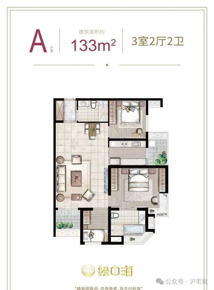 建面约133㎡3房2厅2卫
