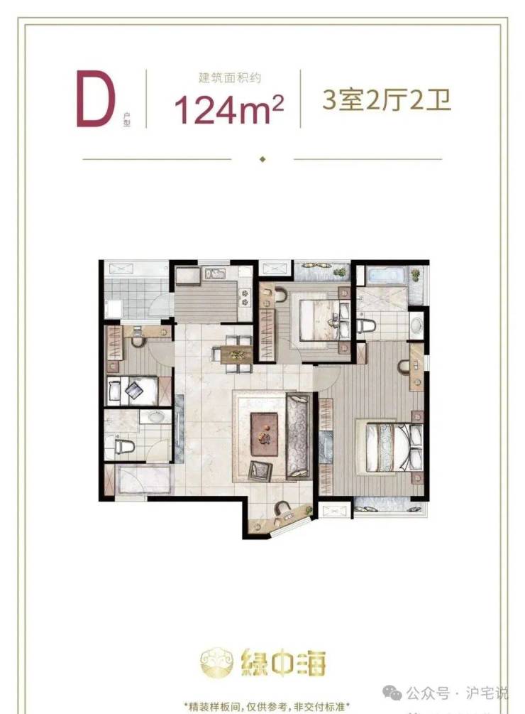建面约124㎡3房2厅2卫