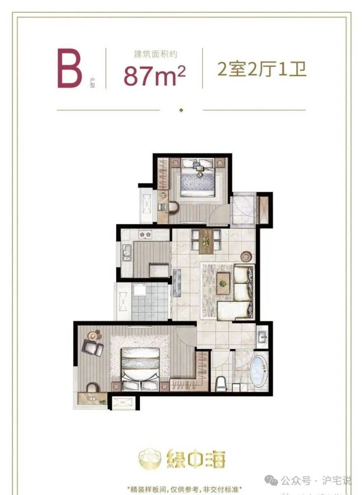 建面约87-89㎡2房2厅1卫