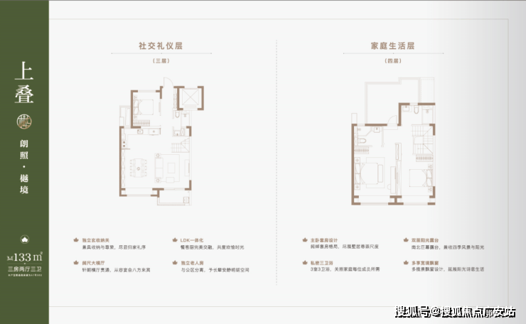 叠墅产品分为4F、6F层叠加,主力产品建面约约122-133㎡上叠,132㎡大平层,131-145㎡下叠。