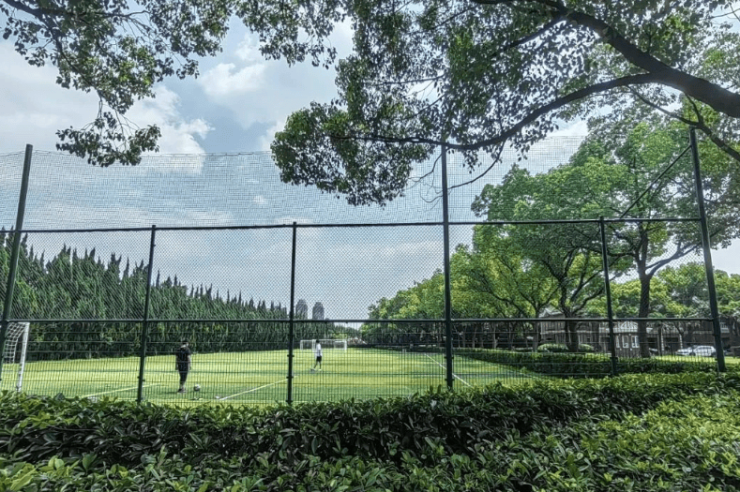 穿过林荫道,华美的欧式建筑,葱茏的绿树,足球场、网球场上孩子们的欢声笑语……