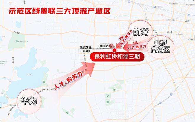由此可见,示范区线沿线连接着华为、前湾、大虹桥、临空、中山公园、市中心、张江、华泾等一众超强产业区。保利虹桥和颂三期凭借地铁房的优势及价格红利,必将成为这些产业区人才置业的热门之选。