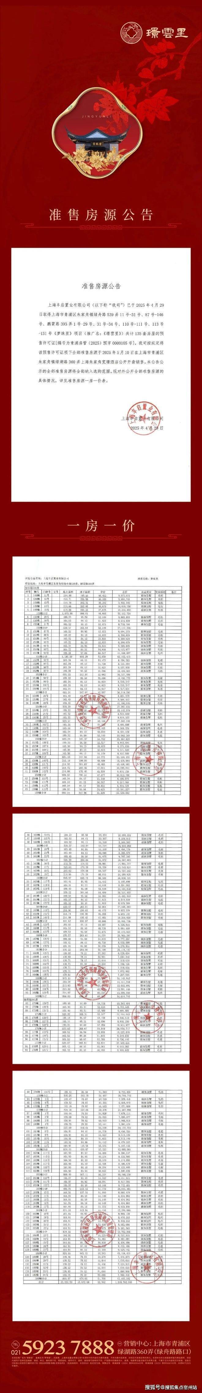 一房一价表如下:上海璟云里官方售楼处电话:400-8855-420√√√【已认证】