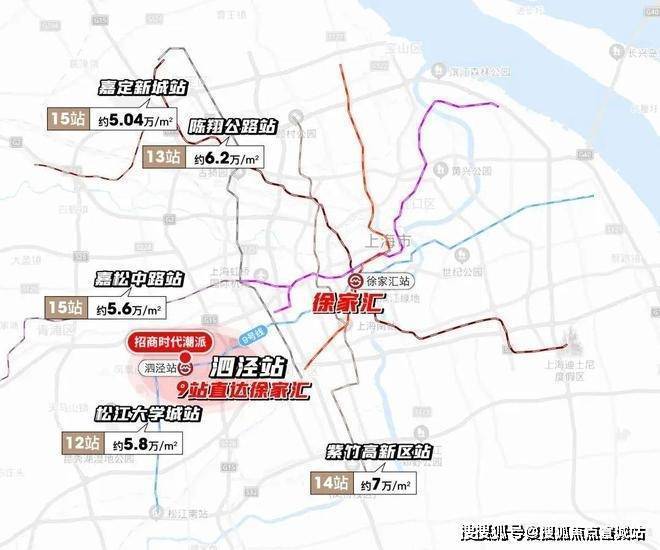 2024年1月10日,经过56路竞价,最终招商以52.5亿摘下松江区泗泾镇SJS20005单元14-01、16-02、17-07号地块,地块位于9号线泗泾站北侧,出让面积129624.71㎡,房地联动价51100元/㎡。