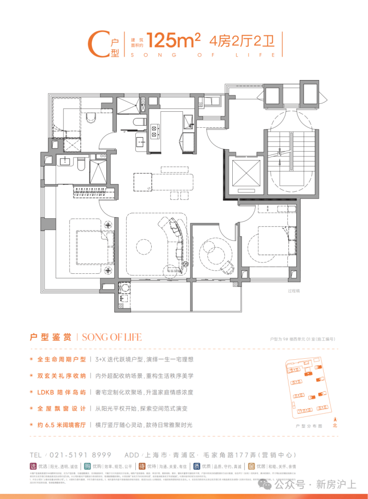 建面约125㎡全面升级迭代的四房户型,不止空间面积更大,且功能更复合、设计更合理、空间利用更高效。类一体一户设计,奢享独立明厅玄关,延伸生活的宽度;突破传统桎梏,约13.5米南向四开间大面宽,实现IMAX级采光自由;五星级酒店式主卧套房,奢配独立卫浴衣帽间;当市场仍在讨论“几房几厅”时,它已率先在500万级总价段完成越级打击。