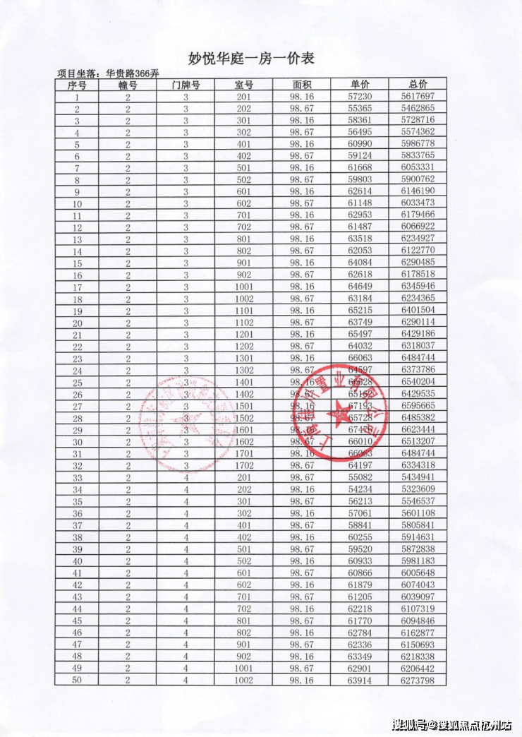项目一房一价表▼
