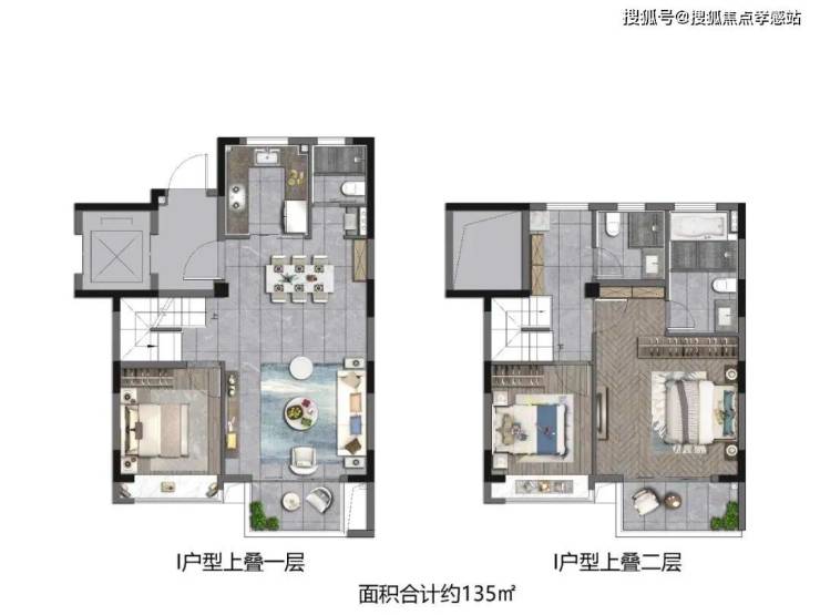 除此之外,项目还有建面约135㎡3房2厅3卫上叠、建面约148㎡4房2厅3卫中叠以及建面约148㎡4房2厅3卫下叠。叠墅产品上有露台下有庭院!