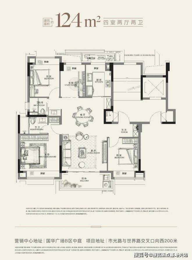 建面约124㎡的一步到位改善四房✅✅越秀杨浦天玥售楼处电话:400-8787-740✅✅