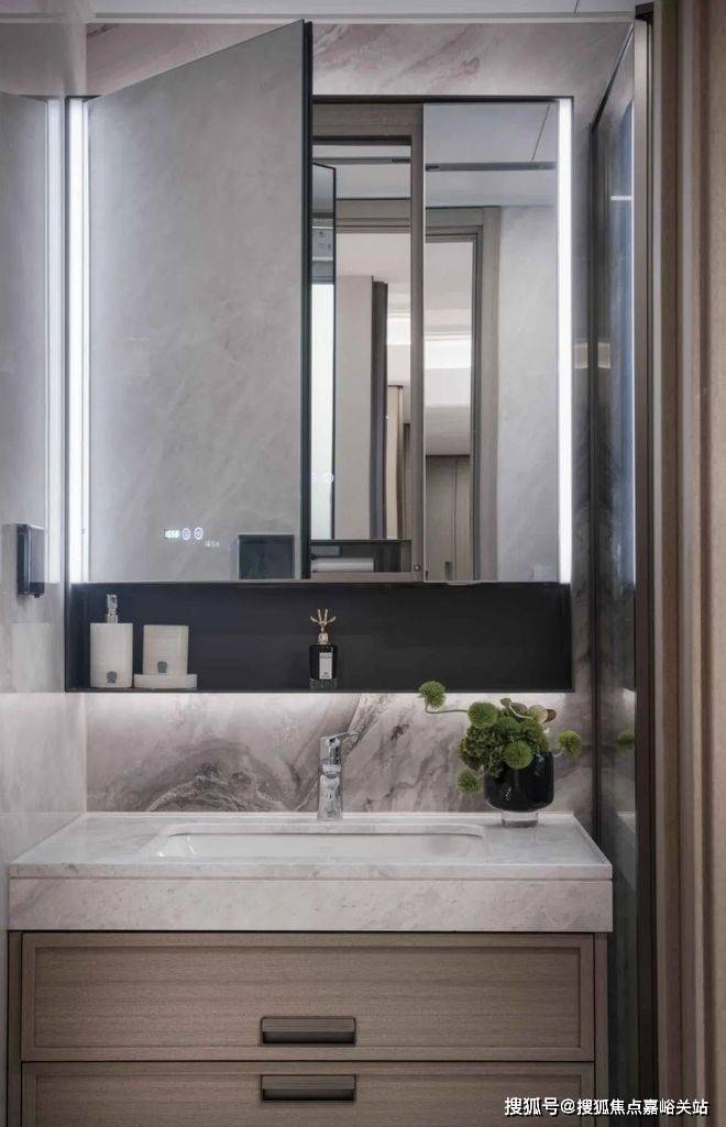 入户门一侧以奢石背景板,内嵌灯带,后期门牌号也会内置灯带,✅✅越秀杨浦天玥售楼处电话:400-8787-740✅✅让入户门前更加明亮美观,增强归家的幸福感。