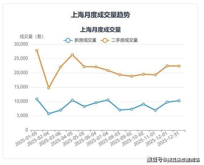 从周度数据看,最近一周(截至2025年12月31日)总成交套数为8032套,环比前一周增长6.8%,其中新房成交套数环比增长6.1%,二手房成交套数环比增长8.3%,短期热度有所回升。