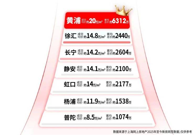 如今的黄浦,早已坐实「全国第一富人区」,全国富豪争相竞逐, 今年新房成交均价站稳20万/㎡, 套均总价更是超过6300万 ,断层领先于其他区域!