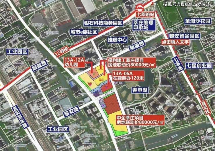 地块北面就是同一天拿地的保利发展&上海建工莘庄社区MHP0-0201单元13A-10A、13A-13A地块,房地联动价也是80000元/㎡。