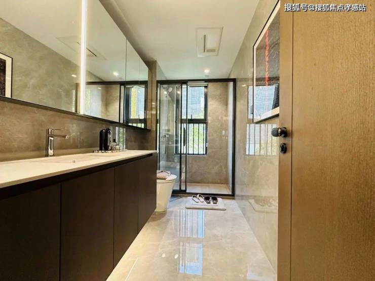 整体的精装不仅有日立的中央空调、威能地暖/热水器、格兰斯柯的新风、高仪的淋雨滑竿、手持花洒、单把手台盆龙头...就连鞋柜精灵、主卫镜柜美妆冰箱等细节装修都已经安排上了。