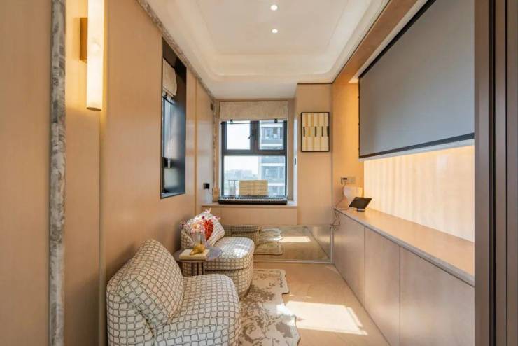 北面的多功能室可以作为客餐厅的延申,欣赏窗外美景的同时和三五好友茶酒小酌,惬意非凡。也可以拉上口袋门作为封闭功能间使用,瑜伽室、冥想室、棋牌室、钢琴室随心而动,伴随着家庭成长需求承载更多可能。