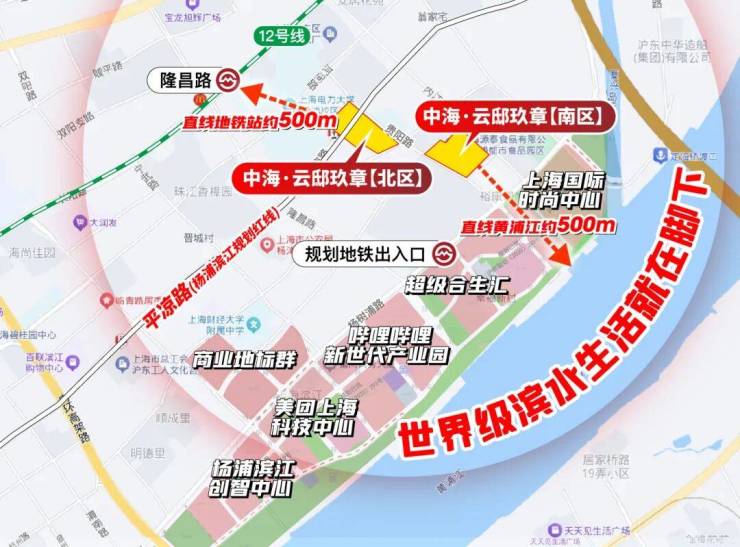 是杨浦在售新房中距离江岸最近的项目,直线仅约500米!一路之隔就是超极合生汇、美团、b站,真正的杨浦滨江核心商务区,世界级滨水生活就在脚下。
