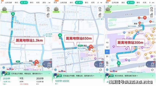 不同的距离步行到地铁站的差距有多少呢?来看百度地图的测距: