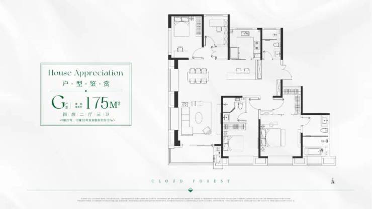 4房:建面约175㎡4室2厅3卫