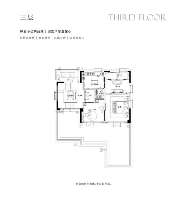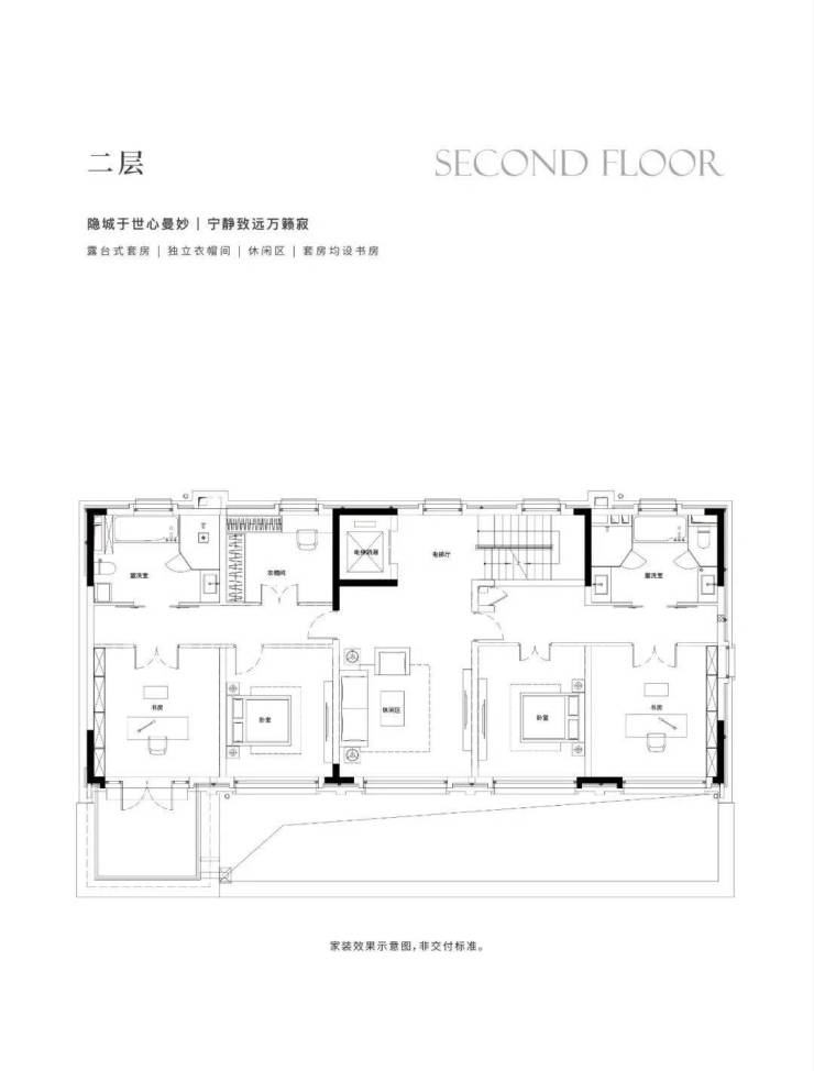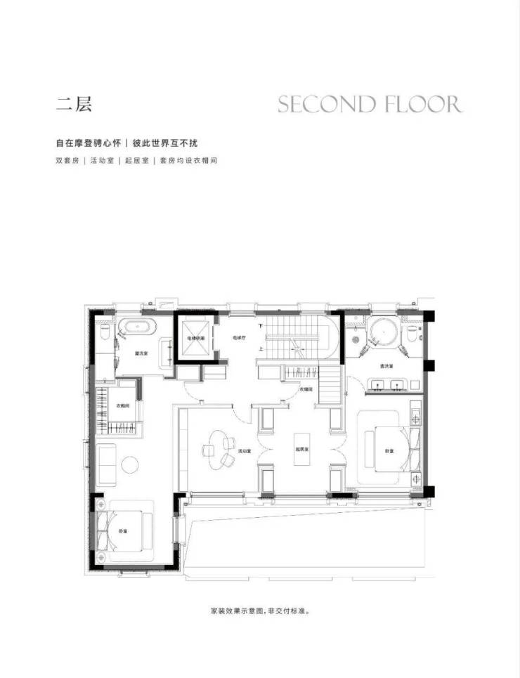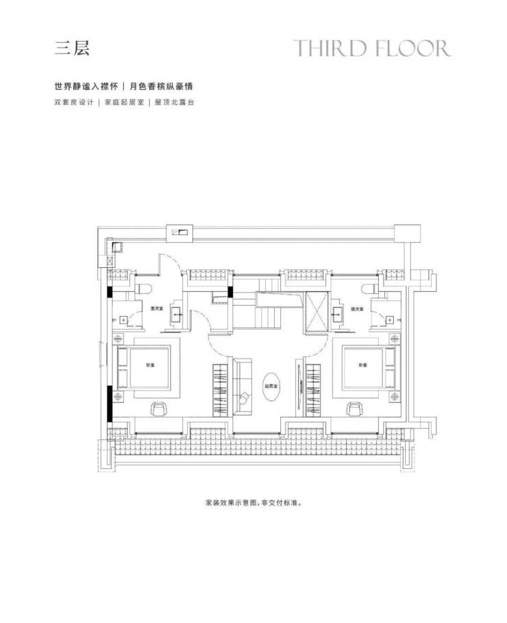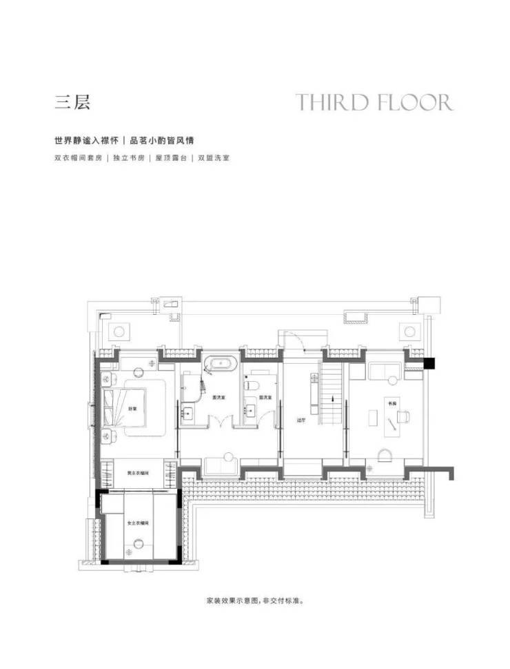 地下1F志趣空间,约7.2m层高,私人菁英社交圈层。首层花园入户,大横厅会晤场域,与时代精神际会。二三层静谧于心,起居室多套房设计,梧桐下的栖心之所。屋顶露台、花园庭院,超大附赠面积,藏身心于天地恢弘。