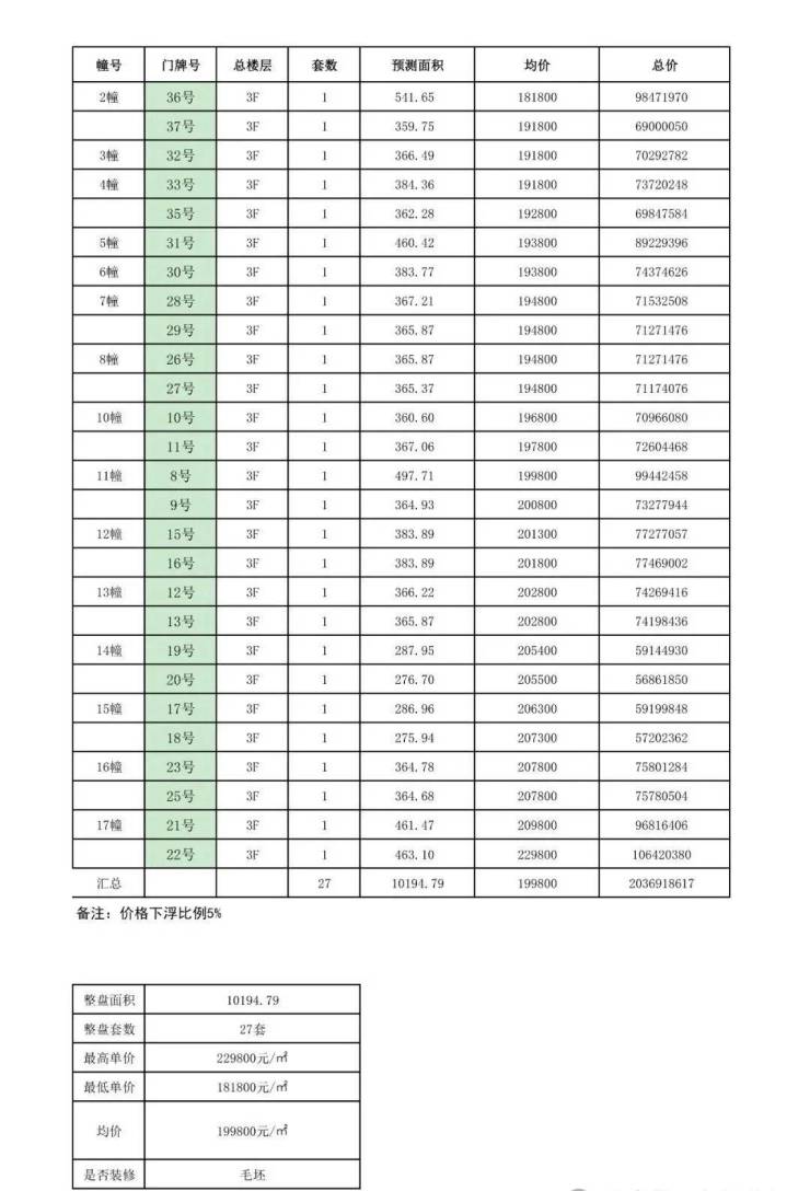 一房一价表: