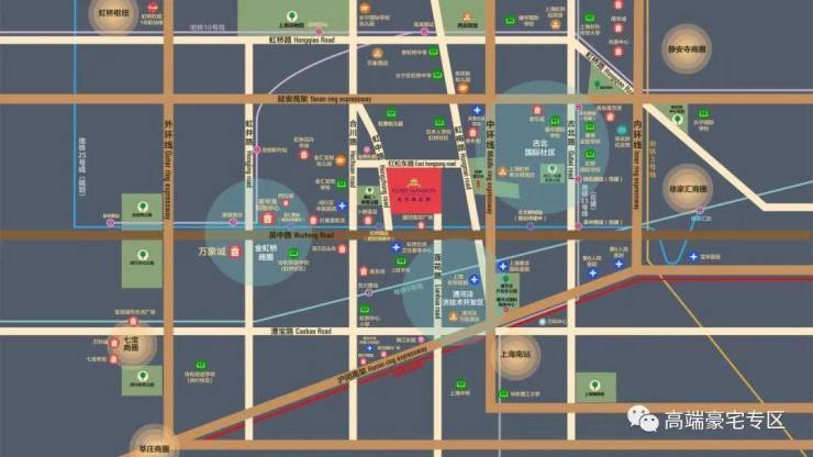 商业配套:直线1.5公里左右有万象城、爱琴海两大20万方级的超级购物中心。还有阿拉城、虹桥国际花卉中心、高岛屋,还有全球名车港以及红星美凯龙。
