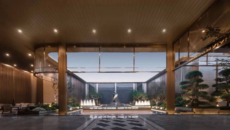 给大家秀一波☮🔥静安玺樾售楼处电话:400-8787-740👈🔥美学示范区实景图!入口是酒店港湾式落客空间,一棵充满艺术感的造型树,蓝翡翠奢石点缀,提升整体品质感。内部是一座精致典雅的水院,艺术雕塑、喷泉水幕、造型树经典组合,仿若一座海派艺术公园~