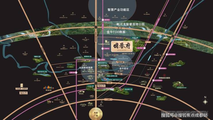五维路网:三环路/四环路/天龙大道横向贯通,天府大道北延线/凤凰山高架纵向串联