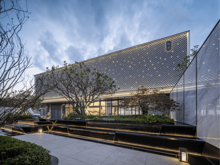 第四重:后场廊园两侧采用 金属格栅与景墙融合打造,于细微处见真章、低调处见奢华;