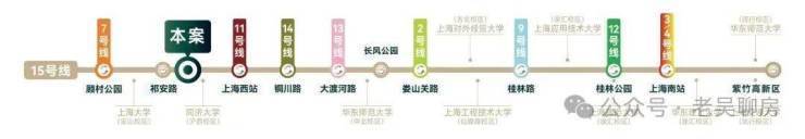 交通方面:地块直线距离15号线祁安路站约500m,15号线被称为沪西大动脉,串联城市南北,全程途经9个高校(10个校区)、4座公园、3个国家级科创园区,2大高铁枢纽,是名副其实的地铁换乘王。未来祁安路上盖还有约3万方TOD规划!