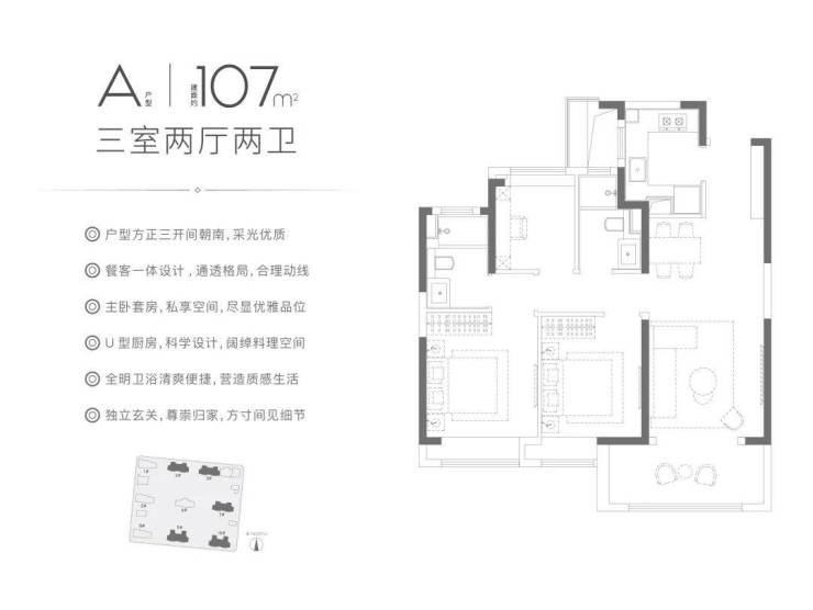项目建面约107㎡户型集LDBK一体化、玄关入户、动静分区设计于一体,在功能性与舒适度上几乎都做到了极致!