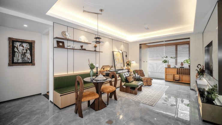 客餐厅约4.05米面宽,南向宽阔采光面,连通室外花园,接景入室。