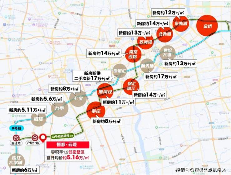 从全市格局来看,12号线可谓是上海的黄金线路,漕河泾、徐汇滨江、南京路、苏河湾、北外滩、东外滩均是上海寸土寸金的CBD,价格早已超过10万大关。而与项目相隔4站的莘庄(七莘路站)目前已经超过8万/㎡,相比之下容积率1.2均价5万出头的恒都·云璟完全能成为12号线沿线高精尖人群的改善置业目的地!
