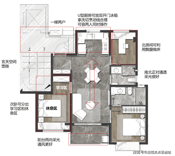 宽敞的玄关和U型厨房与百平三房类似不多赘述。