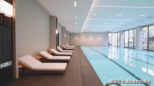 在下沉式景观庭院两侧,是不同的邻里空间。一侧是邻里中心,涵盖恒温泳池以及宽阔的健身房空间。当业主锻炼时,不被空间局限。透过落地窗,可以一边挥洒汗水,一边尽情欣赏庭院中的美景。