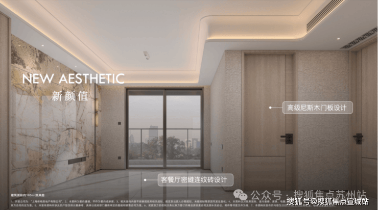 项目大量使用奢石设计,客厅四边弧形天花、主卧树叶拼花地板、精致优雅的骨骼线设计,都是开发商花费更大成本和耗材去呈现更美的视觉体验。