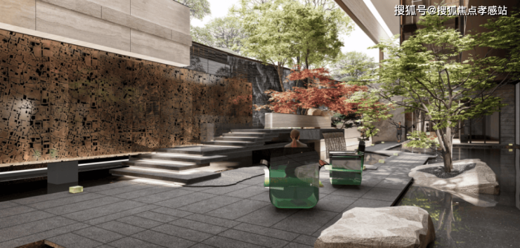 社区景观方面,项目以 "富林风华,十景多花园"为核心理念,通过现代设计语言重构《富林十景》的山水意象,将 "山、水、茶、酒、舟、市" 等江南文化符号有机融入空间序列营造 "一步一景,移步异景" 的沉浸式归家体验。