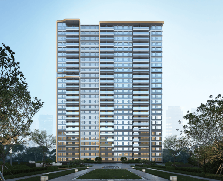 在门头及入户大堂的用材上:单元门头整体和小区入口大堂呼应,两侧采用大象灰石材哑光面和拉槽面,搭配定制龙鳞纹金属网,带给业主的出入间的仕第门庭礼序,呈现了现代东方的城市风骨,尊贵感油然而生。