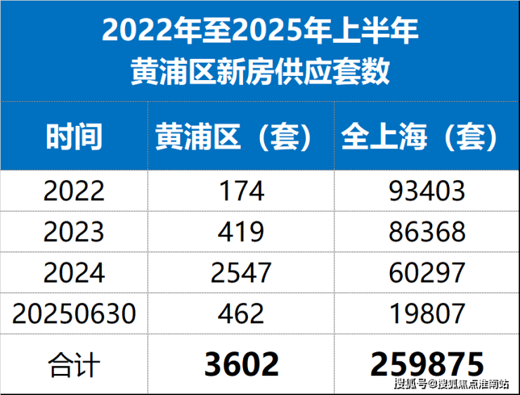2022年-2025年上半年,黄浦区新房供应仅约3602套,占总供应的1.38%,供应套数极少!