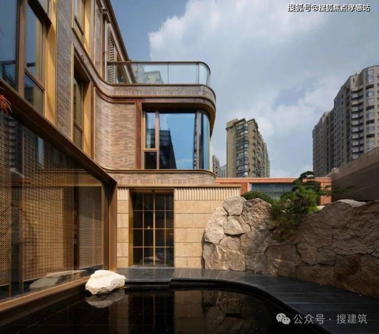 【越秀外滩樾】售楼处电话:400-885-5420✨✨朝向庭院的建筑立面采用了大面积的折叠门和落地窗,以获得更加开放和通透的空间体验。此外,弧形转角窗的引入,不仅柔化了建筑轮廓,更满足了业主对于更广阔视野的追求。建筑本身的石材基座和金属线条,赋予了建筑尊贵感和持久价值。