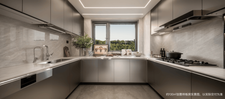 尤其厨房走的高奢范,使用嘉格纳三件套(或同档次品牌,下同,灶具、油烟机、洗碗机)+博世双开门冰箱,妥妥同级顶配。