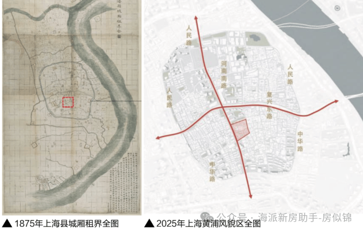 项目踞守黄浦老城厢主轴,这里是上海城市文明的发端:1291年元代设县至今,730余年历史层叠沉淀。