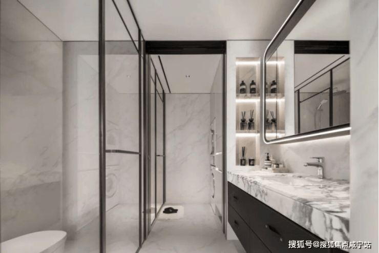酒店式四分离公卫:实现独立洗漱台、卫生间、淋浴间、洗衣区互不打扰,将酒店化体验引入住宅,早高峰时期也能做到出入有序。