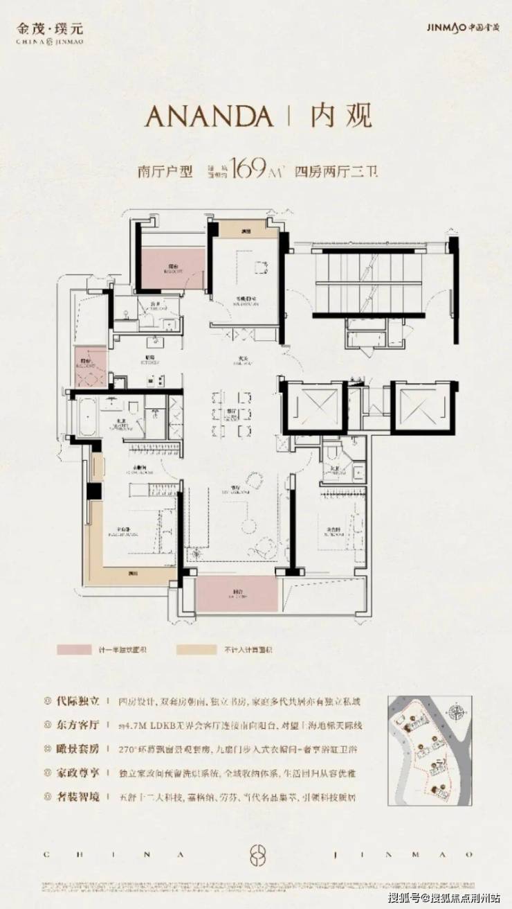 园林首创近7米垂直高差的“立体峡谷景观”,结合5-8.3米全架空层,形成14米高差的全龄剧场,将山川溪谷引入都市核心。金茂主动放弃了中央位置一套本可以做的大户型,腾出空间,打造了一个架空的悬浮观景平台,每一栋的架空层,都变成了视野通透的“珠光宝盒”。